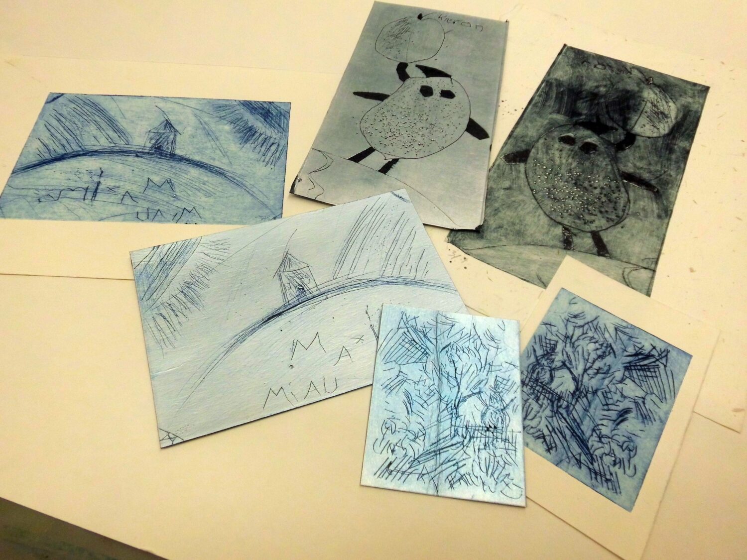 Experimenteller Tiefdruck mit Tetra Pak Verbundkarton: Der Verbundkarton von Tetra Pak ist ein idealer einfacher Druckträger für Kaltnadelradierungen.