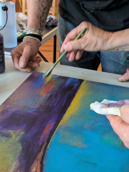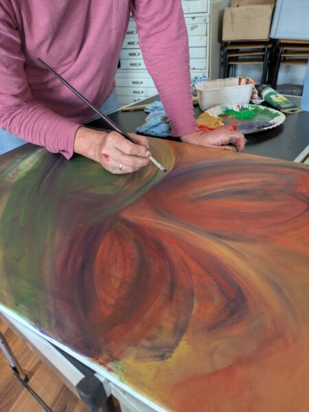 Eine Zeit des Innehaltens, der Wahrnehmung, des Beobachtens, des Betrachten und Befühlen. Es wird angeregt, die eigene kreative Arbeit bewertungsfrei anzunehmen und den intuitiven Mal-Prozess als Mit-sich-in-Kontakt-Sein zu erfahren. Es geht um das Malen als solches, wohlwollend und sensibel zu praktizieren und sein kreatives Schaffen und Tun zu beobachten.